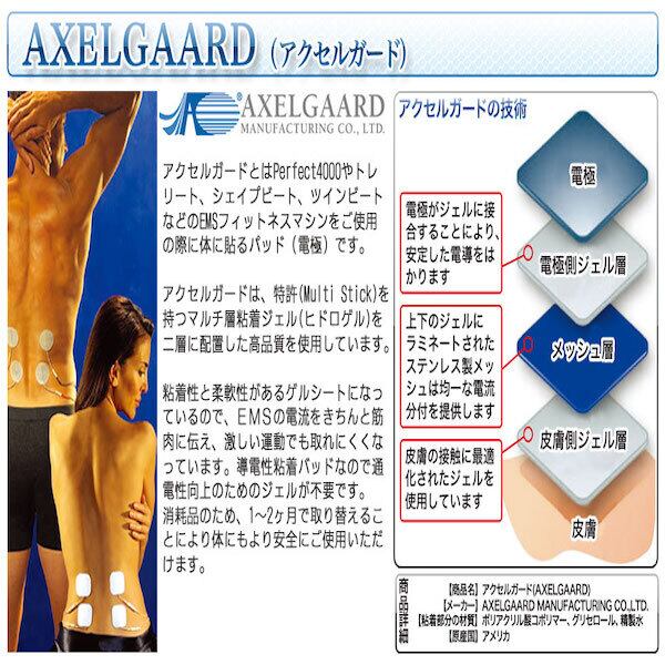 EMS用粘着パッドのリーディングメーカー「アクセルガードMFG」社製。粘着パッドの代名詞ともいわれるアクセルガード純正品の【LLサイズ】です。